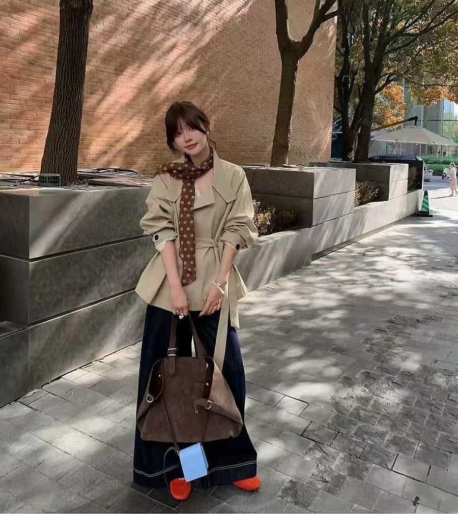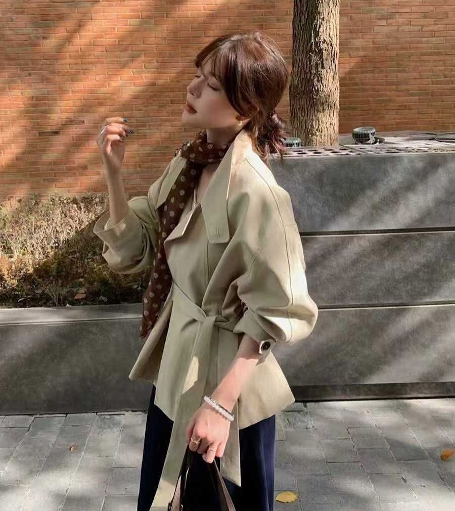 ÁO KHOÁC MĂNG TÔ WGWE CỔ CAO CÓ ĐAI EO FREESIZE W7045