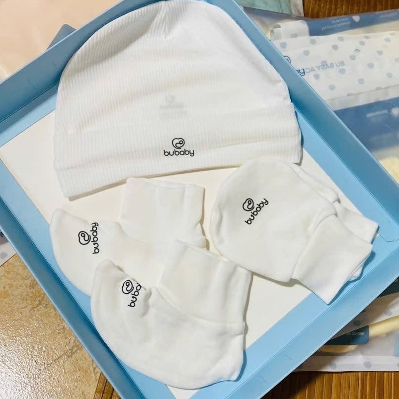 COMBO MŨ + BAO CHÂN + BAO TAY TRẮNG CHO BÉ BUBABY ASR192200