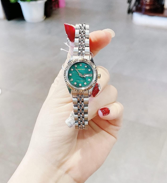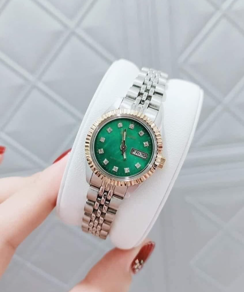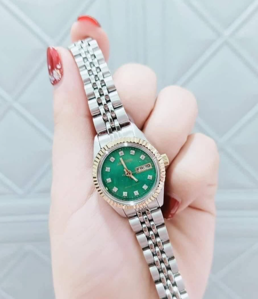 👍Dây màu bạc phối mặt xanh thanh lịch.