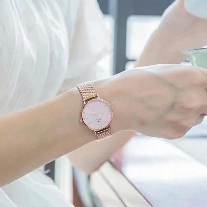 🍀Đồng hồ D_W Petite Melrose DW00100367 chính hãng, với thiết kế tinh tế, dây vỏ thép không gỉ mạ vàng hồng công nghệ PVD, mặt hồng thời trang, cọc số gạch, 2 kim, đồng hồ thời trang