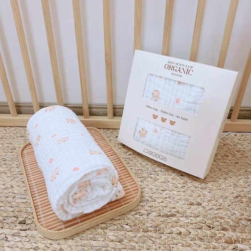 ♻️ - Chất liệu xô nhăn organic 6 lớp, kháng khuẩn, không gây kích ứng da.