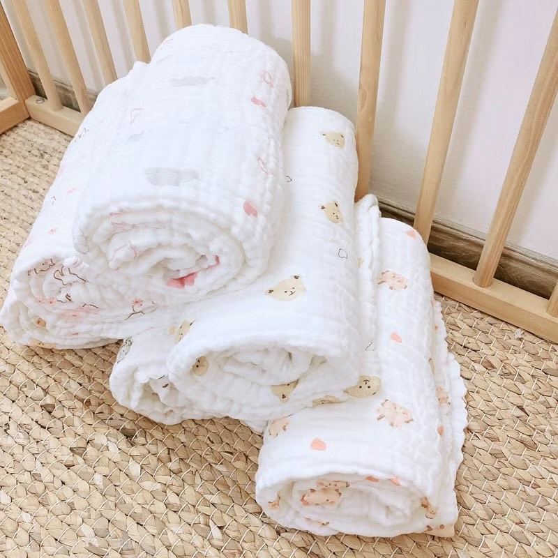 Khăn tắm 6 lớp thêu điểm họa tiết ở đầu cực xinh, mềm mại & cực thấm hút nha