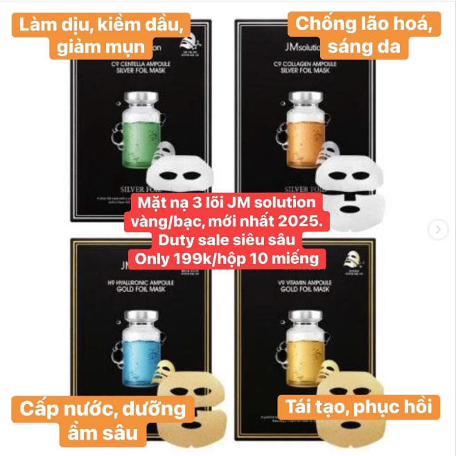 Mặt nạ JM Solution tinh chất vàng/bạc nâng cơ, chống lão hóa, giải cứu làn da mệt mỏi, thiếu sức sống, và có dấu hiệu lão hóa nghiêm trọng.