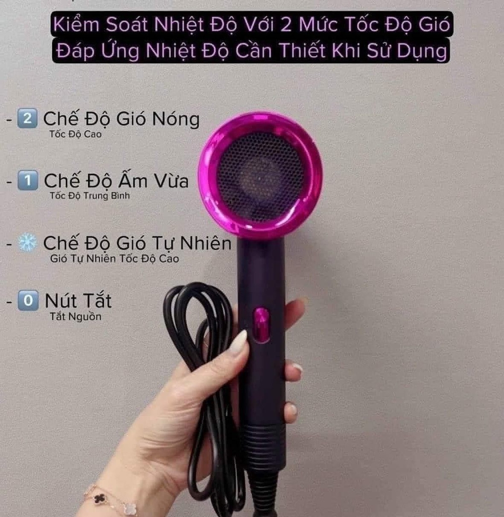 🔌 3 mức độ nhiệt: Mát, nóng vừa, nóng hỗ trợ tạo kiểu.