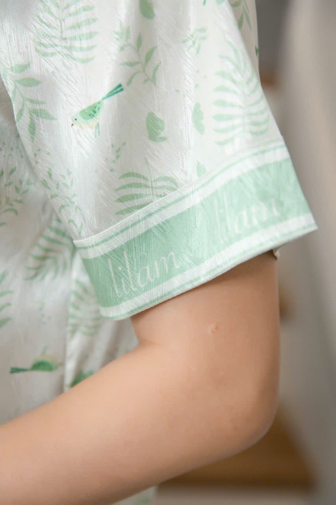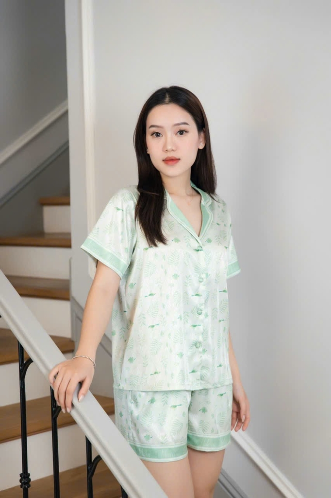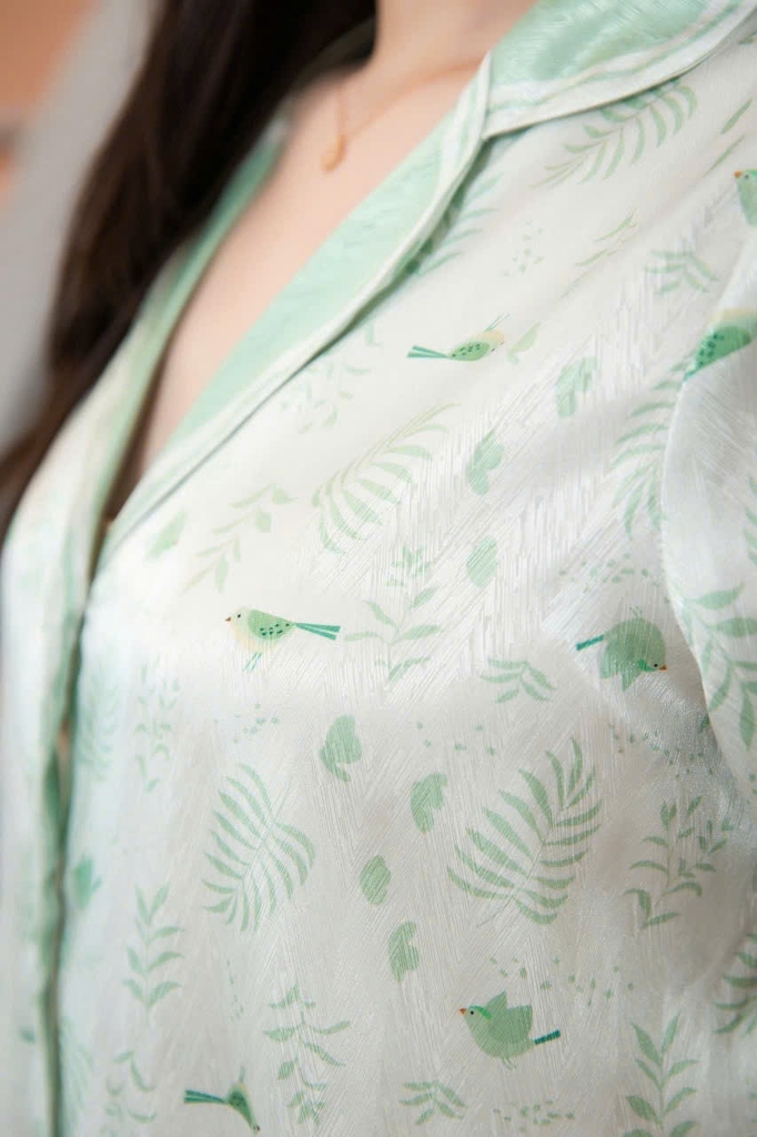 🌷LILAM gửi đến bạn bộ pijama lụa tằm vân gỗ cao cấp, với tone xanh pastel nhã nhặn, điểm xuyết họa tiết thiên nhiên tươi mát