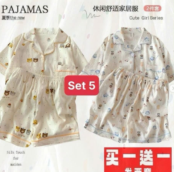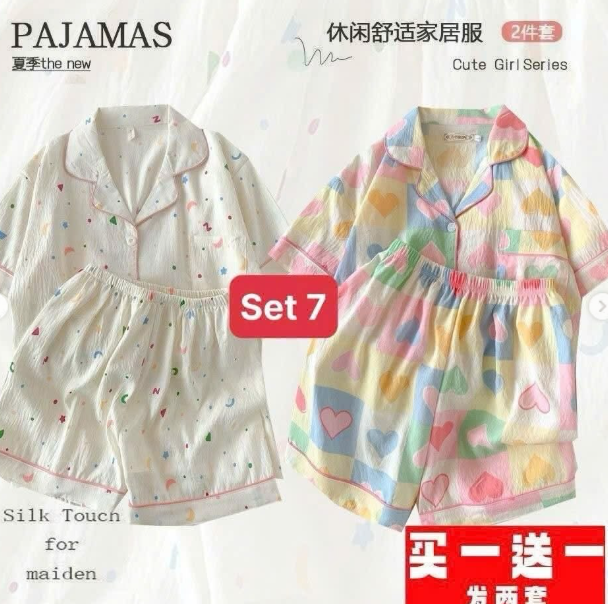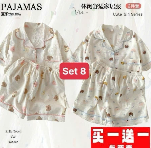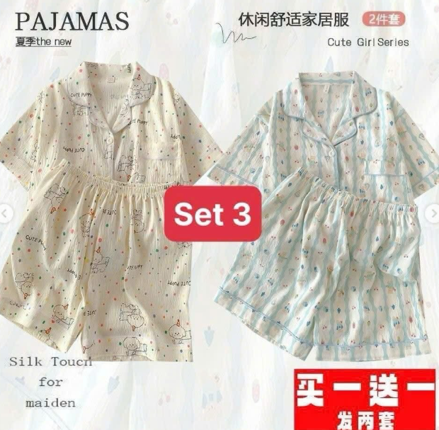 E gom set 2 bộ Pijama chất cotton nhăn mềm mại mặc mát mặc thích lắm ý