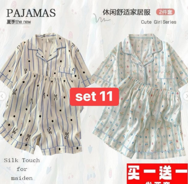 E gom set 2 bộ Pijama chất cotton nhăn mềm mại mặc mát mặc thích lắm ý