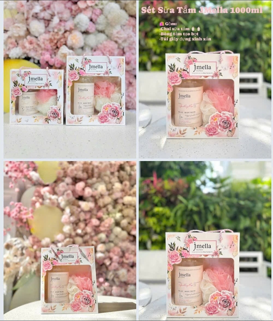 Set sữa tắm Jmella với tone màu hồng trắng rất rất là yêu , e vừa nhìn đã mê lắm luôn rồi , rất thích hợp để tặng các CE nhân ngày 20/10 ạ 🎁